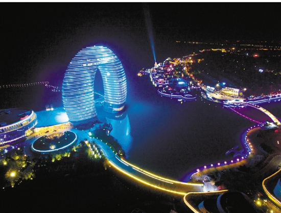 太湖圖影旅游度假區(qū)管理委員會工作人員介紹,太湖演藝小鎮(zhèn)總體規(guī)劃設計為“一中心、三區(qū)”:太湖演藝中心、生態(tài)休閑度假區(qū)、歡樂世界演藝區(qū)、動物王國演藝區(qū)。自2016年4月8日開工以來,太湖龍之夢樂園內400多個施工點全面開花,目前項目內有7000多名工程人員奮戰(zhàn)一線。