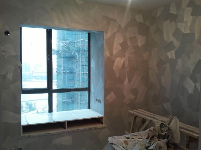 5、最后拋光:三道批刮完成以后已經(jīng)形成馬來(lái)漆圖案效果了,用不銹鋼刀調(diào)整好角度批刮拋光,直到墻面如大理石般光澤,完成.