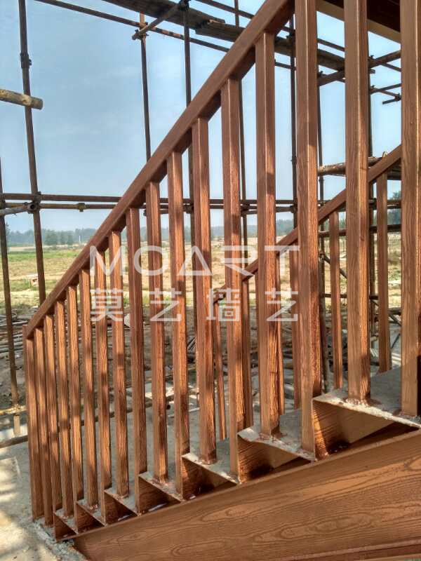 木紋漆屬于美術漆,是一種通過特殊手法可以在非木頭材質表面做出與‘原木’相似度99%的漆類。目前已經廣泛運用于公園、景區道路護欄,各式廊架葡萄架、高檔小區內外墻面、廣告標示牌等一系列建筑設施外表面。可適用的材質有:方鋼、不銹鋼、鍍鋅管、鋁合金、鐵管、水泥面(柱)、混凝土、密度板、PVC塑料材質等等。