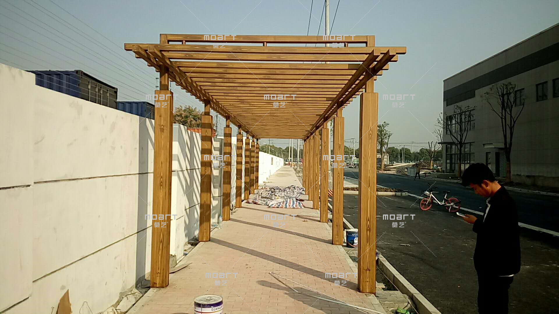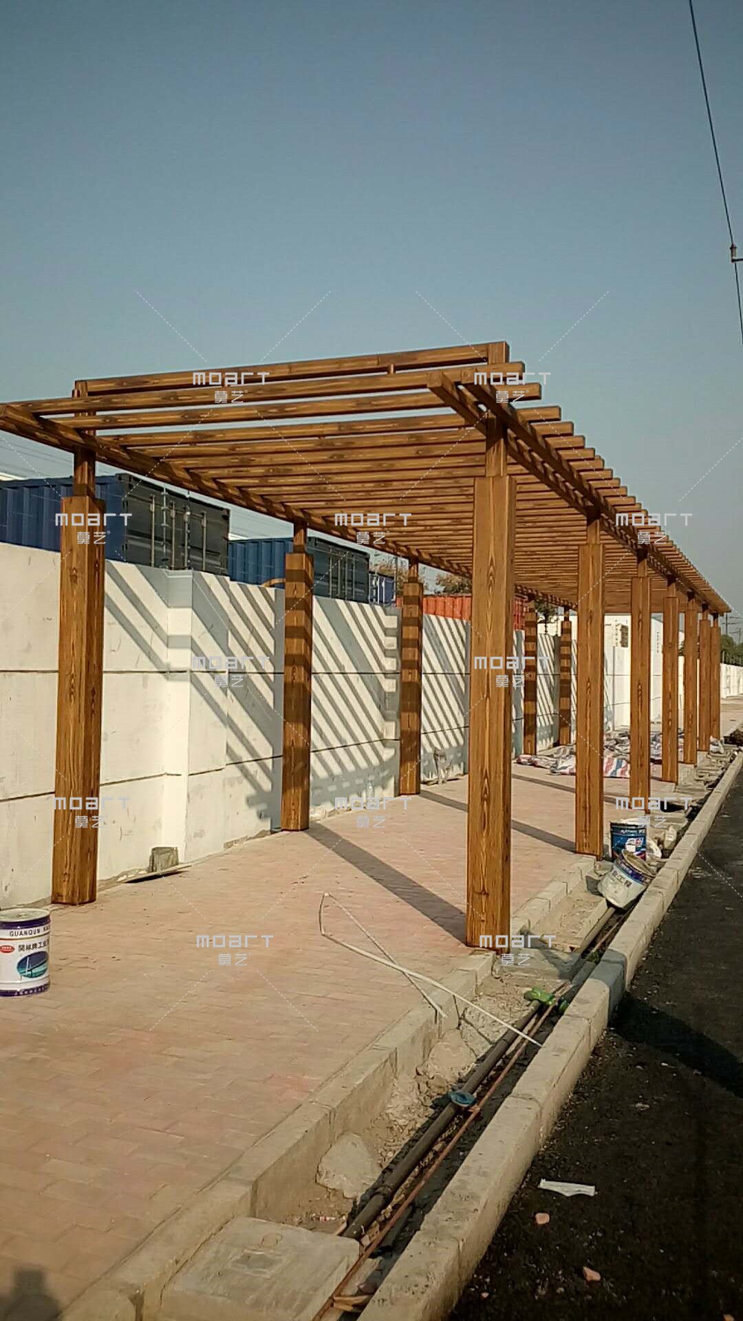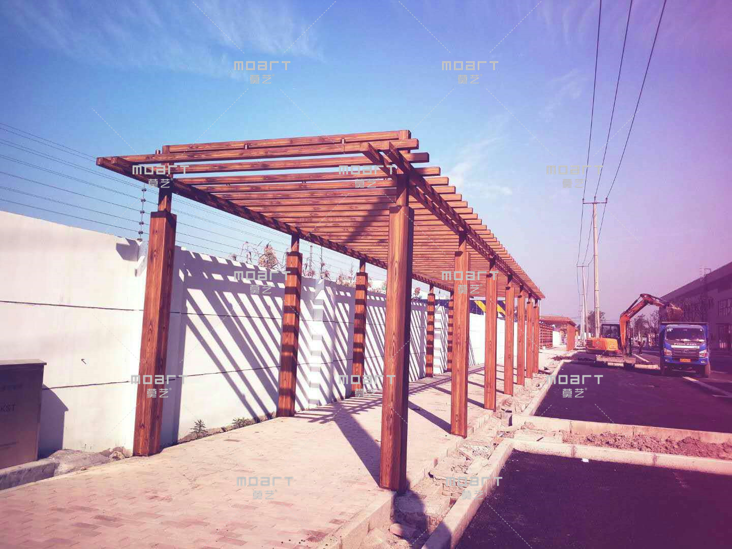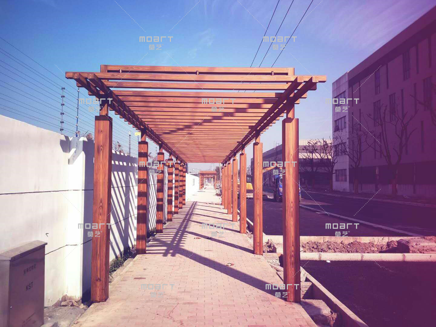 下面4圖是在鋼結構廊架上做出來的仿木紋效果,有復古元素,藝術性極強。